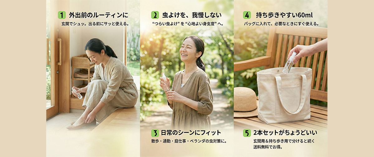 外出前にひと吹きで、日常の虫対策を習慣に。